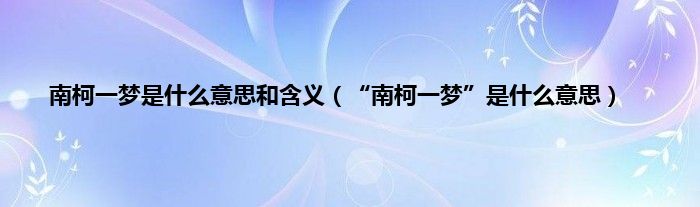 大家好,小常来为大家解答以上问题。南柯一梦是什么意思和含义,“南柯一梦”是什么意思很多人还不知道,现在让我们一起来看看吧!