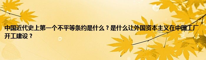 大家好,小常来为大家解答以上问题。中国近代史上第一个不平等条约是什么?是什么让外国资本主义在中国工厂开工建设?很多人还不知道,现在让我们一起来看看吧!