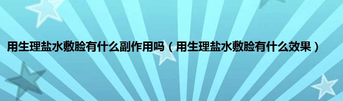 大家好,小科来为大家解答以上问题。用生理盐水敷脸有什么副作用吗,用生理盐水敷脸有什么效果很多人还不知道,现在让我们一起来看看吧!