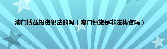 大家好,小常来为大家解答以上问题。澳门博益投资犯法的吗,澳门博旅是非法集资吗很多人还不知道,现在让我们一起来看看吧!