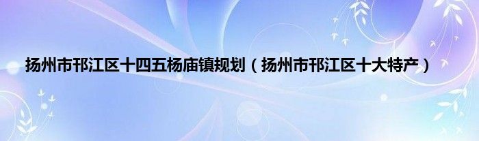 大家好,小常来为大家解答以上问题。扬州市邗江区十四五杨庙镇规划,扬州市邗江区十大特产很多人还不知道,现在让我们一起来看看吧!