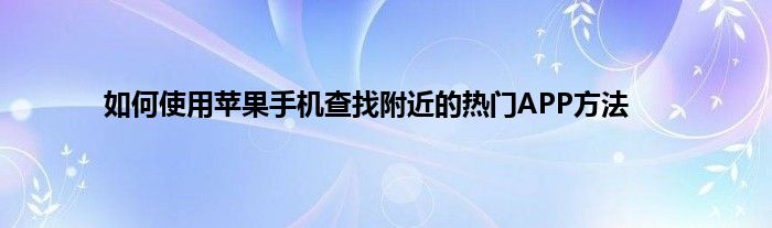 现在大家使用手机的频率越来越频繁,手机也为我们提供了许多的便利,今天小编也来说一下这个如何使用苹果手机查找附近的热门APP方法文章,这个操作其实不复杂,接下来就给大家介绍一下如何使用苹果手机查找附近的热门APP方法来看看吧: