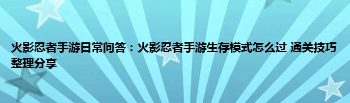 以上就是火影忍者手游日常问答:火影忍者手游生存模式怎么过,通关技巧整理分享的推荐,相信通过火影忍者手游日常问答:火影忍者手游生存模式怎么过,通关技巧整理分享这篇文章能帮到你,也欢迎对游戏很感兴趣小伙伴们一起来探讨。