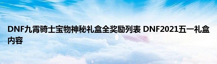 DNF九霄骑士宝物奥秘礼盒有什么奖励?DNF九霄骑士礼盒是这次五一套装的奖励之一,现在的礼包内的礼盒,已经是很多玩家购买礼包的一个重点了。这次的礼盒奖励有些什么东西呢?下面就来看看具体的奥秘礼盒奖励吧。