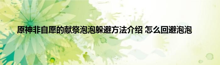 以上就是原神非自愿的献祭泡泡怎么躲的全部内容了,希翼能够帮到大家。