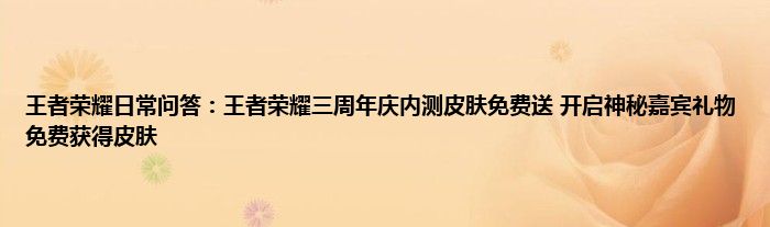 以上就是王者荣耀日常问答:王者荣耀三周年庆内测皮肤免费送,开启神秘嘉宾礼物免费获得皮肤的推荐,相信通过王者荣耀日常问答:王者荣耀三周年庆内测皮肤免费送,开启神秘嘉宾礼物免费获得皮肤这篇文章能帮到你,也欢迎对游戏很感兴趣小伙伴们一起来探讨。