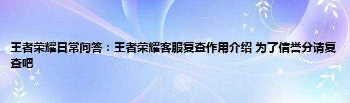 以上就是王者荣耀日常问答:王者荣耀客服复查作用介绍,为了信誉分请复查吧的推荐,相信通过王者荣耀日常问答:王者荣耀客服复查作用介绍,为了信誉分请复查吧这篇文章能帮到你,也欢迎对游戏很感兴趣小伙伴们一起来探讨。