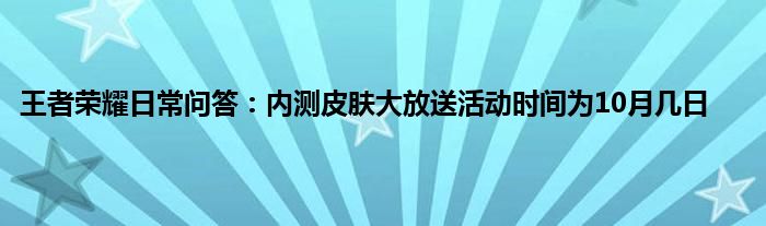 以上就是王者荣耀日常问答:内测皮肤大放送活动时间为10月几日的推荐,相信通过王者荣耀日常问答:内测皮肤大放送活动时间为10月几日这篇文章能帮到你,也欢迎对游戏很感兴趣小伙伴们一起来探讨。