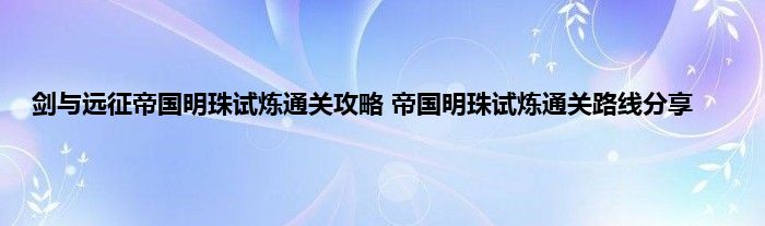 以上就是剑与远征帝国明珠试炼通关路线的内容,希望对大家有所帮助。