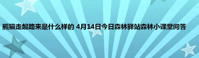 今天来聊聊关于熊猫走起路来是什么样的 4月14日今日森林驿站森林小课堂问答的文章,游戏是很多人的选择,但是游戏玩多了也会身心疲惫,现在就为大家来简单介绍下熊猫走起路来是什么样的 4月14日今日森林驿站森林小课堂问答,希望对各位小伙伴们有所帮助。