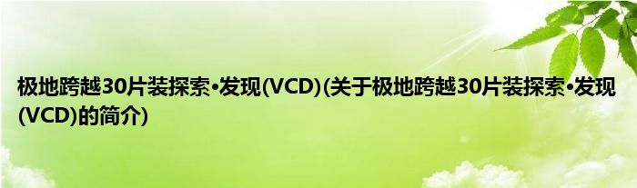 大家好,极地跨越30片装探索·发现,VCD,关于极地跨越30片装探索·发现,VCD的简介很多人还不知道,现在让我们一起来看看吧!