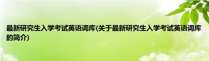 最新研究生入学考试英语词库(关于最新研究生入学考试英语词库的简介)