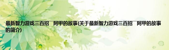 本文关于最新智力游戏三百招――阿甲的故事的简介就讲解完毕,希望对大家有所帮助。