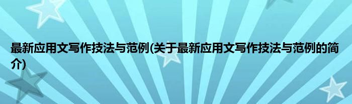 本文关于最新应用文写作技法与范例的简介就讲解完毕,希望对大家有所帮助。