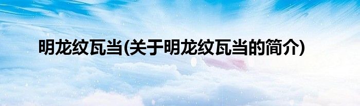 大家好,明龙纹瓦当,关于明龙纹瓦当的简介很多人还不知道,现在让我们一起来看看吧!