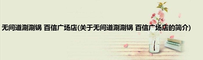 无间道涮涮锅百信广场店(关于无间道涮涮锅百信广场店的简介)