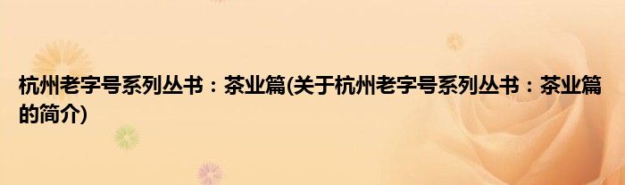 本文关于杭州老字号系列丛书:茶业篇的简介就讲解完毕,希望对大家有所帮助。