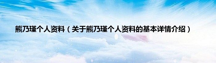 本文关于熊乃瑾个人资料的基本详情介绍就讲解完毕,希望对大家有所帮助。