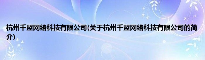 本文关于杭州千盟网络科技有限公司的简介就讲解完毕,希望对大家有所帮助。