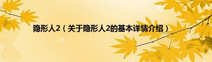 本文关于隐形人2的基本详情介绍就讲解完毕,希望对大家有所帮助。