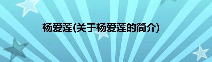 本文关于杨爱莲的简介就讲解完毕,希望对大家有所帮助。