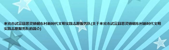 本文关于来宾市武宣县思灵镇朝东村新时代文明实践志愿服务队的简介就讲解完毕,希望对大家有所帮助。