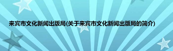 大家好,来宾市文化新闻出版局,关于来宾市文化新闻出版局的简介很多人还不知道,现在让我们一起来看看吧!