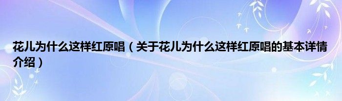 本文关于花儿为什么这样红原唱的基本详情介绍就讲解完毕,希望对大家有所帮助。