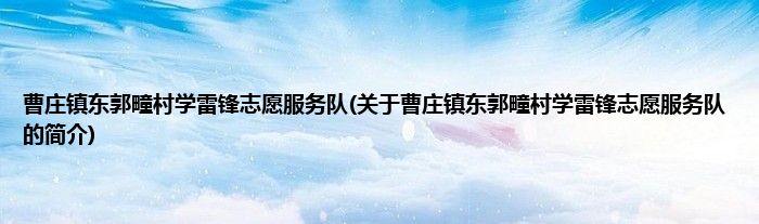 本文关于曹庄镇东郭疃村学雷锋志愿服务队的简介就讲解完毕,希望对大家有所帮助。