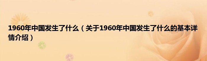 本文关于1960年中国发生了什么的基本详情介绍就讲解完毕,希望对大家有所帮助。