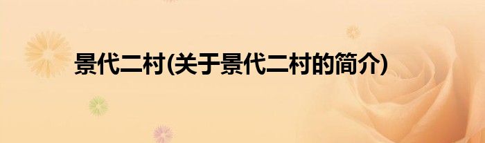 大家好,景代二村,关于景代二村的简介很多人还不知道,现在让我们一起来看看吧!