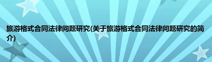 本文关于旅游格式合同法律问题研究的简介就讲解完毕,希望对大家有所帮助。