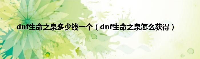 大家好,精选小编来为大家解答以上问题。dnf生命之泉多少钱一个,dnf生命之泉怎么获得很多人还不知道,现在让我们一起来看看吧!
