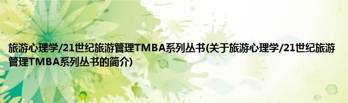 本文关于旅游心理学/21世纪旅游管理TMBA系列丛书的简介就讲解完毕,希望对大家有所帮助。