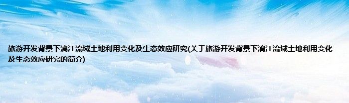 旅游开发背景下漓江流域土地利用变化及生态效应研究(关于旅游开发背景下漓江流域土地利用变化及生态效应研究的简介)