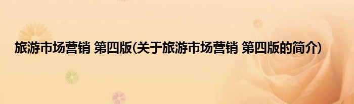 大家好,旅游市场营销 第四版,关于旅游市场营销 第四版的简介很多人还不知道,现在让我们一起来看看吧!