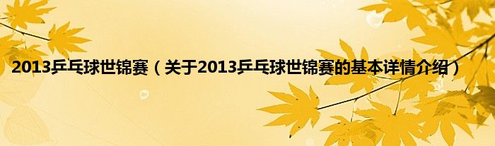 本文关于2013乒乓球世锦赛的基本详情介绍就讲解完毕,希望对大家有所帮助。