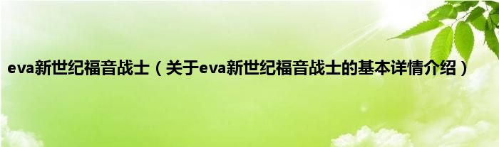 本文关于eva新世纪福音战士的基本详情介绍就讲解完毕,希望对大家有所帮助。