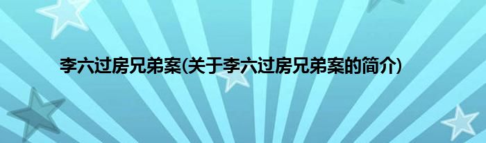 本文关于李六过房兄弟案的简介就讲解完毕,希望对大家有所帮助。