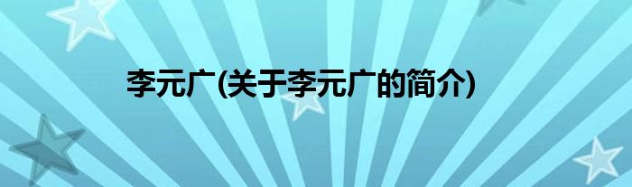 大家好,李元广,关于李元广的简介很多人还不知道,现在让我们一起来看看吧!