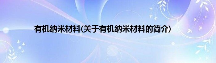 本文关于有机纳米材料的简介就讲解完毕,希望对大家有所帮助。
