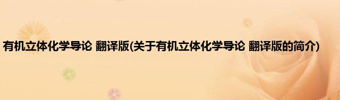 本文关于有机立体化学导论 翻译版的简介就讲解完毕,希望对大家有所帮助。