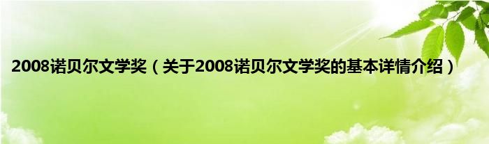 本文关于2008诺贝尔文学奖的基本详情介绍就讲解完毕,希望对大家有所帮助。