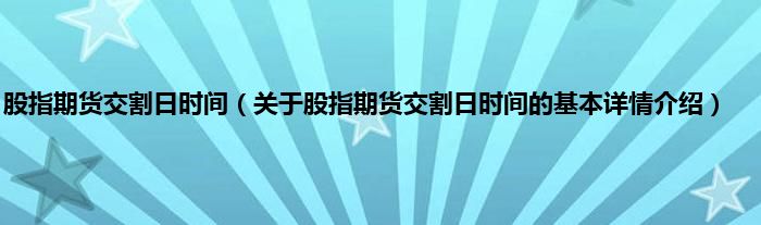本文关于股指期货交割日时间的基本详情介绍就讲解完毕,希望对大家有所帮助。