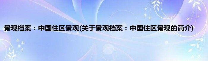 本文关于景观档案:中国住区景观的简介就讲解完毕,希望对大家有所帮助。