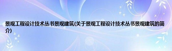 本文关于景观工程设计技术丛书景观建筑的简介就讲解完毕,希望对大家有所帮助。
