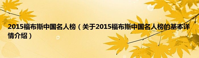 本文关于2015福布斯中国名人榜的基本详情介绍就讲解完毕,希望对大家有所帮助。