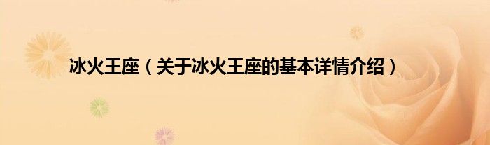 本文关于冰火王座的基本详情介绍就讲解完毕,希望对大家有所帮助。