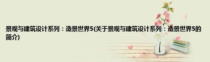 本文关于景观与建筑设计系列:造景世界5的简介就讲解完毕,希望对大家有所帮助。