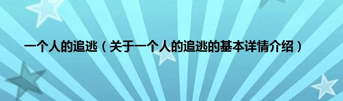 本文关于一个人的追逃的基本详情介绍就讲解完毕,希望对大家有所帮助。